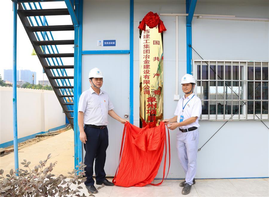 蒙勝益(左)與項目黨支部書記馬文雄共同為支部成立揭牌