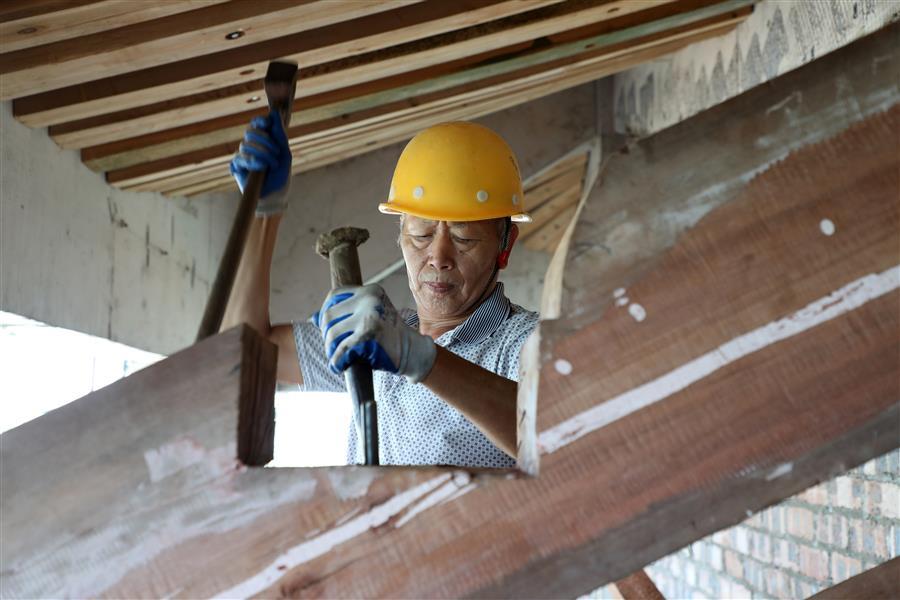 連日來(lái),在該項(xiàng)目湖心閣斗栱安裝現(xiàn)場(chǎng),每天有20多名經(jīng)驗(yàn)豐富的木工師傅在認(rèn)真進(jìn)行斗栱安裝作業(yè)。為保證項(xiàng)目質(zhì)量,解決項(xiàng)目斗栱安裝難題,加快安裝速度,項(xiàng)目部結(jié)合實(shí)際,通過多次試驗(yàn)和優(yōu)化設(shè)計(jì),確保柱子能承受斗栱重量,采用正裝方式進(jìn)行安裝,保證了安裝速度和安裝質(zhì)量。面對(duì)項(xiàng)目選用的木制斗栱材料密度大、重量重、安裝作業(yè)工作面窄等困難,木工師傅結(jié)合自身多年的木工經(jīng)驗(yàn),克服現(xiàn)場(chǎng)施工遇到的困難,相互配合,目前已完成斗栱安裝工作量的三分之一。