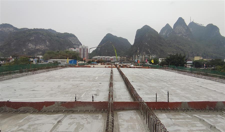 4月3日,冶建公司桂金分公司承建的河池市龍江六橋(輝樂橋)工程順利完成拱上箱梁結(jié)構(gòu)頂板混凝土澆筑施工任務(wù),主體橋面實(shí)現(xiàn)全幅貫通。