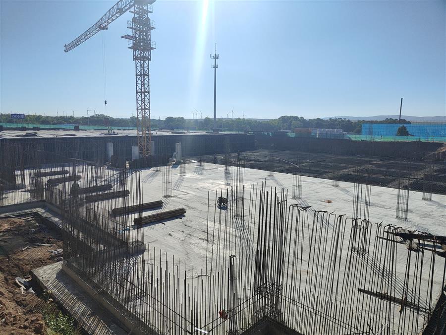 目前,該項(xiàng)目2#配送中心5-12軸鋼結(jié)構(gòu)完成100%,正在進(jìn)行1-4軸二層鋼柱牛腿焊接、6.65米鋼梁安裝及二層鋼柱安裝。2#冷庫(kù)4-12軸交E交J軸防水板混凝土澆筑完成,正在加固13-18軸地下室頂板模板,綁扎4-12軸交A交E軸防水板鋼筋。