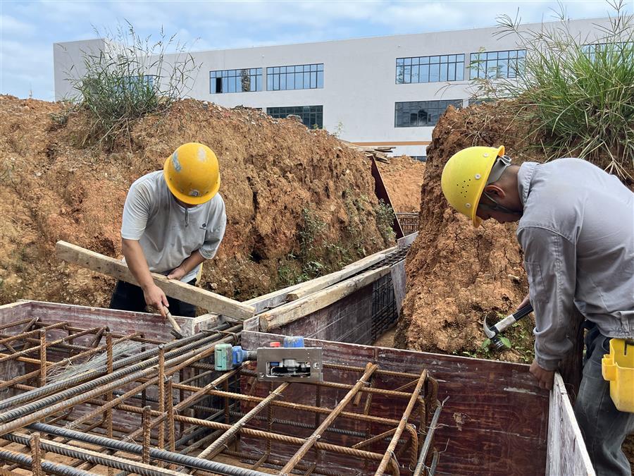 鹿寨智慧林業(yè)零碳循環(huán)產(chǎn)業(yè)園項目,管理人員正在進(jìn)行鋼筋套筒扭矩測試。