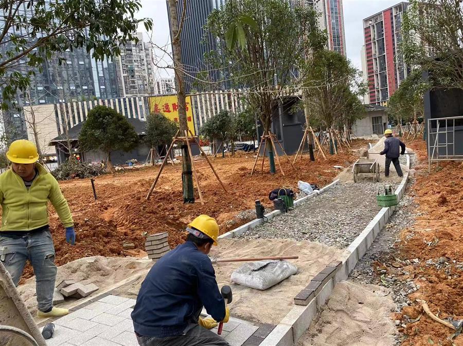 為如期實現(xiàn)建成目標,項目部積極協(xié)調(diào)各方力量,科學合理安排工序,在保證安全生產(chǎn)和施工質(zhì)量的前提下,全力加快推進項目建設,爭取早日完成地面部分工程,達到開放條件。截至目前地下室框架已完成,室外給排水管道完成95%,路面路基整形完成100%,園林綠化完成80%,出入口裝飾裝修完成80%,地面鋪裝完成80%。
