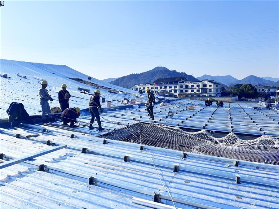 項目施工現(xiàn)場,機器轟鳴,工程車輛來回穿梭,工人們在各點位開展墊層、樓承板澆筑、鋼筋綁扎、栓釘焊接、基礎(chǔ)砌磚、屋面底板和鋼結(jié)構(gòu)梁柱安裝等施工作業(yè),處處涌現(xiàn)“冬忙”景象。