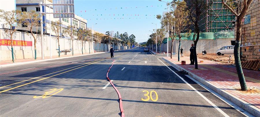 項(xiàng)目道路總長(zhǎng)度為619.01米,規(guī)劃道路橫斷面寬度 24 米的雙向四車(chē)道,瀝青混凝土路面。自開(kāi)工以來(lái),廣東公司及項(xiàng)目部積極組織施工,科學(xué)統(tǒng)籌安排各項(xiàng)資源,努力克服種種困難,全力以赴、積極應(yīng)對(duì),圓滿(mǎn)完成建設(shè)任務(wù)。