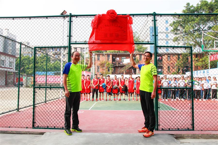 集團(tuán)公司劉副主席與歐總經(jīng)理共同為籃球場(chǎng)揭牌