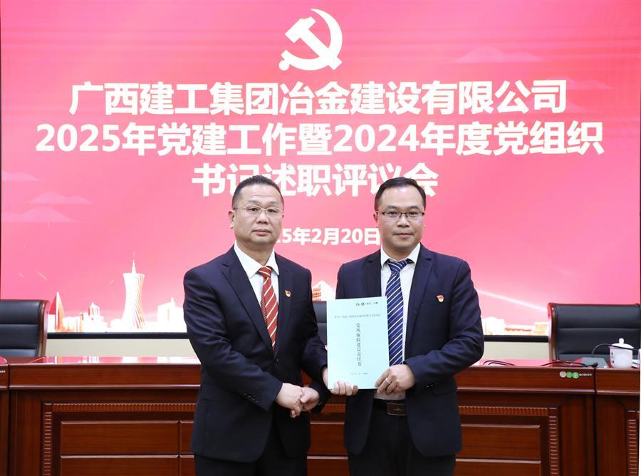 2月20日,冶建公司2025年黨建工作暨2024年度黨組織書記述職評議會議在公司1號樓第二會議室召開。公司黨委書記、董事長覃振華參加并講話,黨委副書記、總經(jīng)理蒙勝益參加,黨委副書記、紀委書記、工會主席賴海標主持。