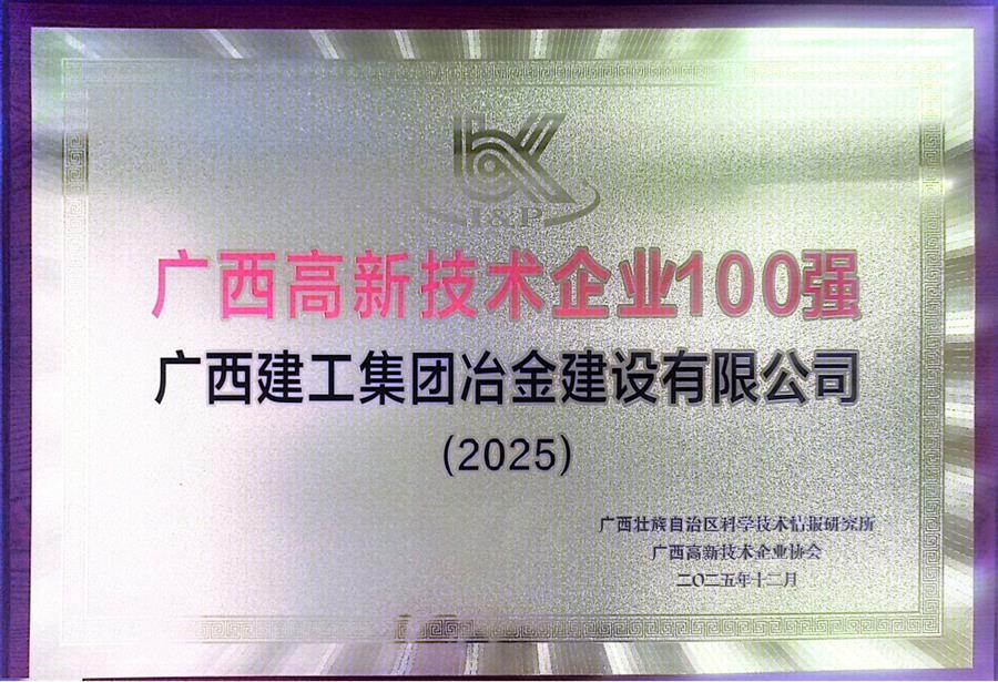 近日,廣西科技情報研究所聯(lián)合廣西高新技術(shù)企業(yè)協(xié)會正式發(fā)布2025年度廣西高新技術(shù)企業(yè)百強(qiáng)系列榜單。冶建公司憑借突出的創(chuàng)新實(shí)力、穩(wěn)健的發(fā)展質(zhì)效成功躋身榜單,充分彰顯了公司技術(shù)創(chuàng)新能力、核心競爭力與行業(yè)影響力。