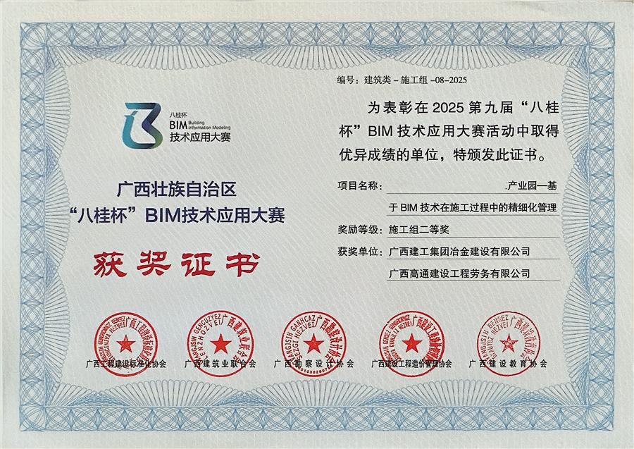 3月20日,2026年全區(qū)建筑信息模型(BIM)應用交流會暨第九屆“八桂杯”BIM技術應用大賽頒獎在柳州舉行。冶建公司基礎分公司申報的一課題,憑借出色的BIM技術應用水平與管理成效,榮獲施工組建筑類二等獎。
