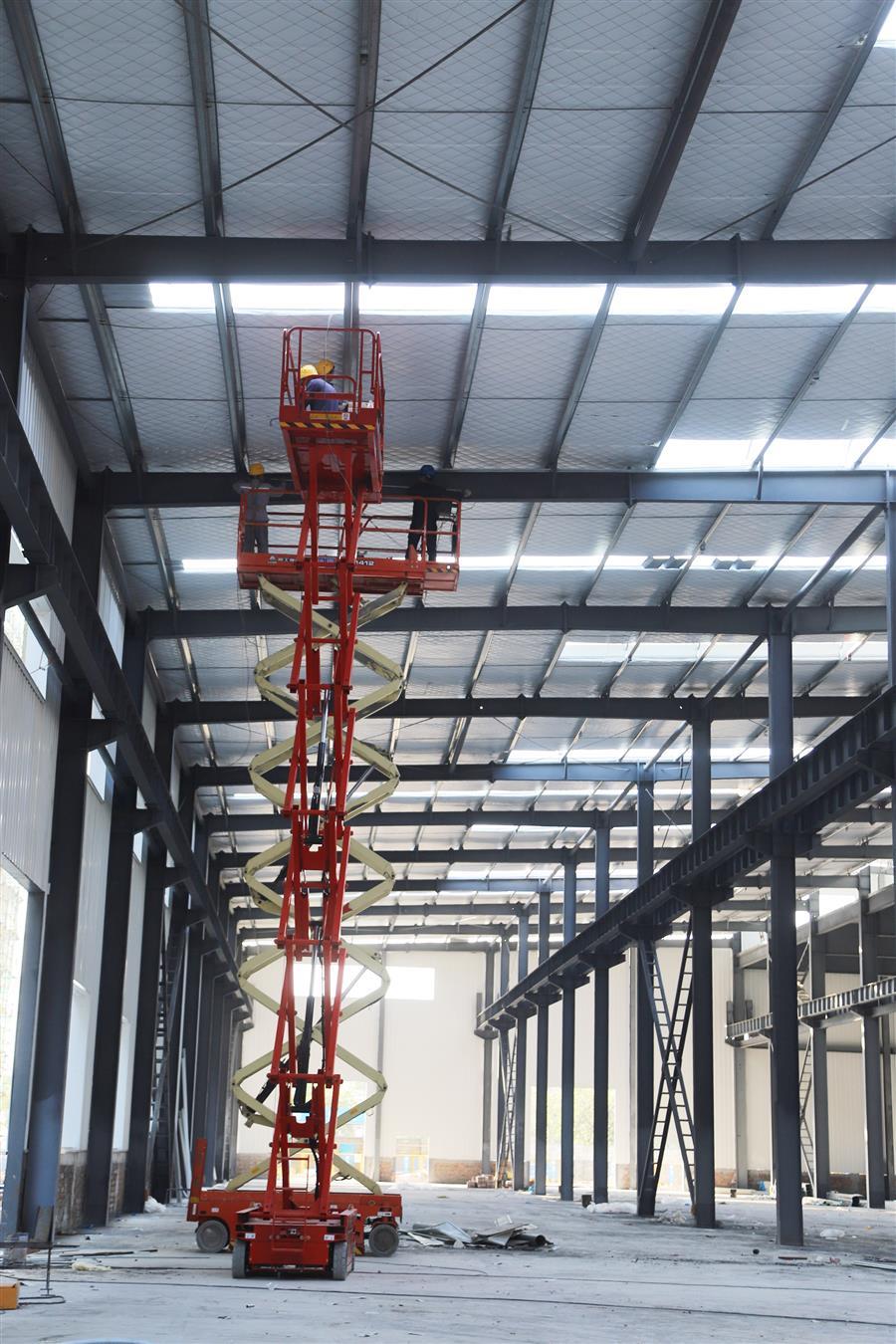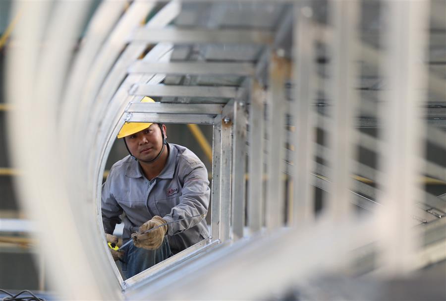11月5日,工人在測量鋼構(gòu)架,準(zhǔn)備安裝墻板。