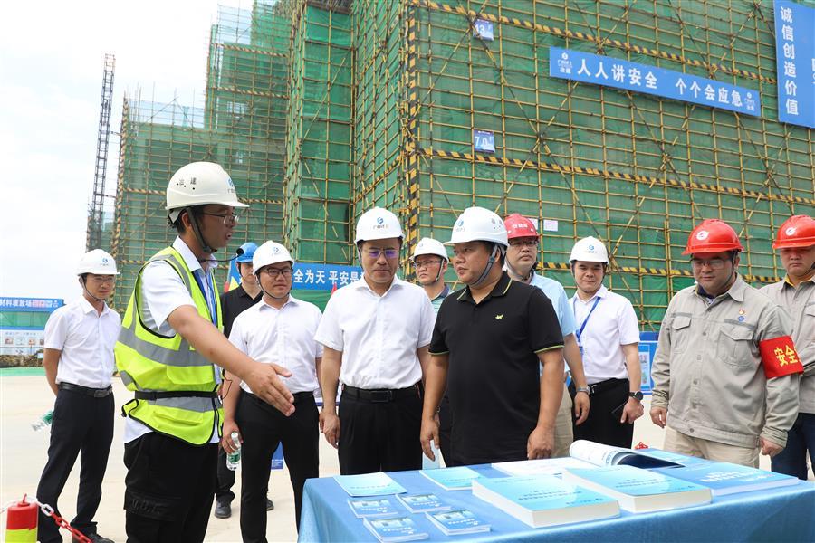 樊功翔與項(xiàng)目管理團(tuán)隊(duì)研究項(xiàng)目施工進(jìn)度